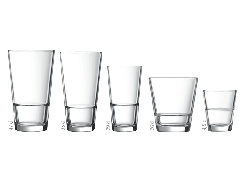 Vidrio tensionado. Vasos apilables.
