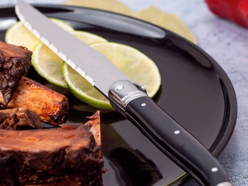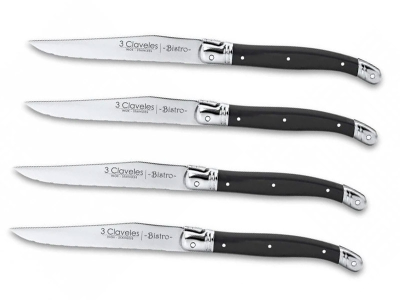Set de 4 cuchillos chuleteros Bistro con su filo dentado, práctico y duradero, ideal para cortes precisos en carnes. Cada pieza cuenta con hojas en acero inoxidable de alta calidad y un mango de ABS ergonómico, que facilita un agarre cómodo y seguro, y está diseñada para ser ligera y fácil de manejar.