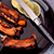 Cuchillo y tenedor de alta calidad con hojas acero inoxidable. Mangos de madera comprimida. El chuchillo con sierra perlada y 110 mm de hoja.