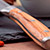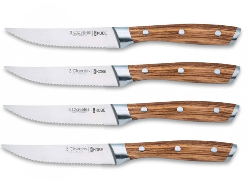 Set de 4 chuleteros Kobe. Acero inoxidable y mango de madera de castaño.