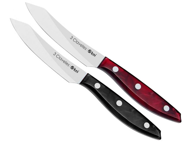 Set de 4 cuchillos chuleteros Koi. Acero inoxidable y mango acrílico en marrón o negro.