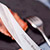 Tenedor y cuhillo de acero inoxidable y mangos POM. Hojas acero inoxidable. Mangos polioximetileno POM. Hoja del cuchillo chuletero de 115 mm.