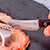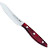 Hojas de Acero Inoxidable AISI 420 y mangos de madera de abedul con remaches en aluminio. Dos acabados: rojo o negro.<b> En caja de cartón de 6 unidades. Ya no van en caja de madera</b> No apto para lavado en lavaplatos.