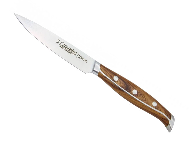 Hojas de Acero Inoxidable AISI 420 y mangos de madera de abedul con remaches en aluminio. Dos acabados: rojo o negro.<b> En caja de cartón de 6 unidades. Ya no van en caja de madera</b> No apto para lavado en lavaplatos.