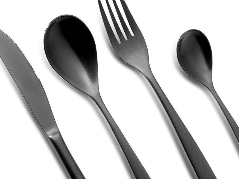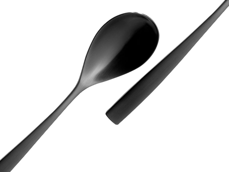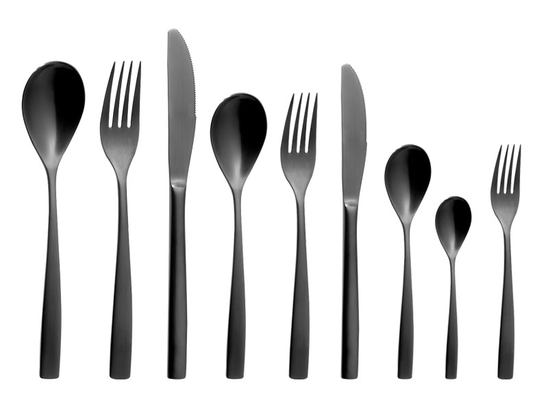 Versión en negro de la cubertería Barcelona. Delicada cubertería de diseño fresco y actual.