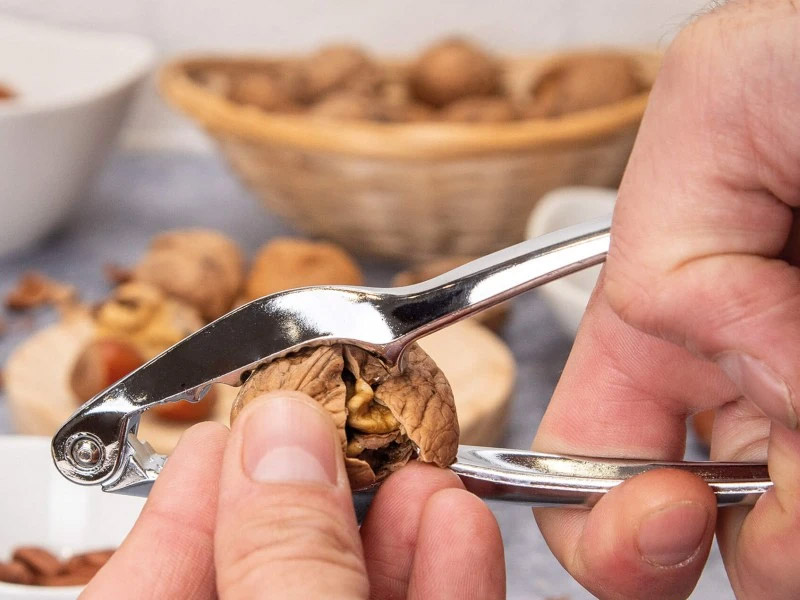 Cascanueces. Su diseño tipo tenaza asegura un agarre firme y controlado. Metal cromado.