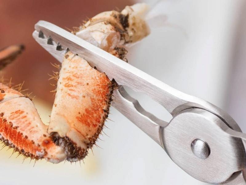 Tenaza profesional para marisco, diseñada para romper patas y caparazones sin dañar la carne interior. Incorpora muelle de apertura automática que facilita su uso y mejora la velocidad en cocina o en mesa. Permite trabajar tanto con patas grandes como finas de mariscos. Mango ergonómico. Fabricada en acero inoxidable.