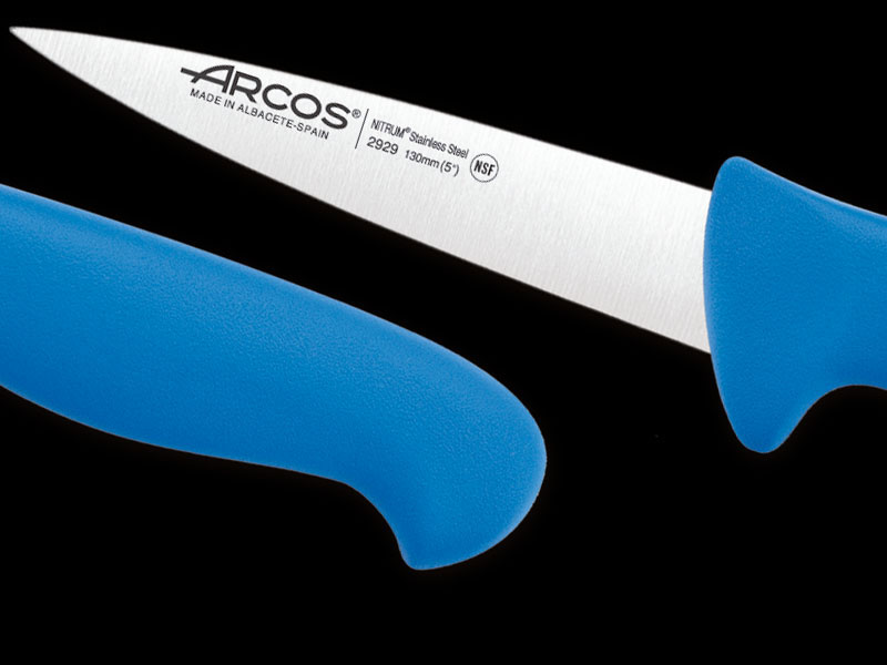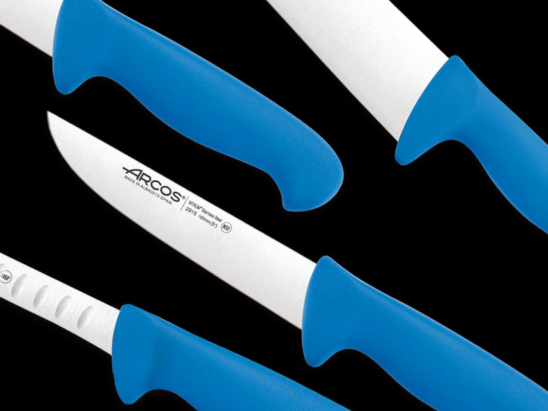 El color del mango está pensado para identificar al cuchillo según los alimentos que se cortan Cuenta con certificación sanitaria NSF Internacional (National Sanitary Foundation). El color azul es la serie pensada para corte de pescados y mariscos crudos.