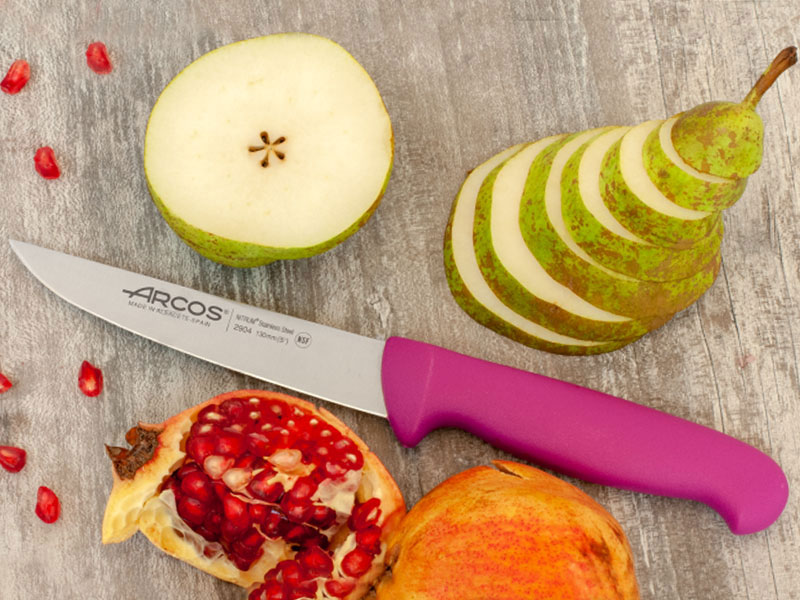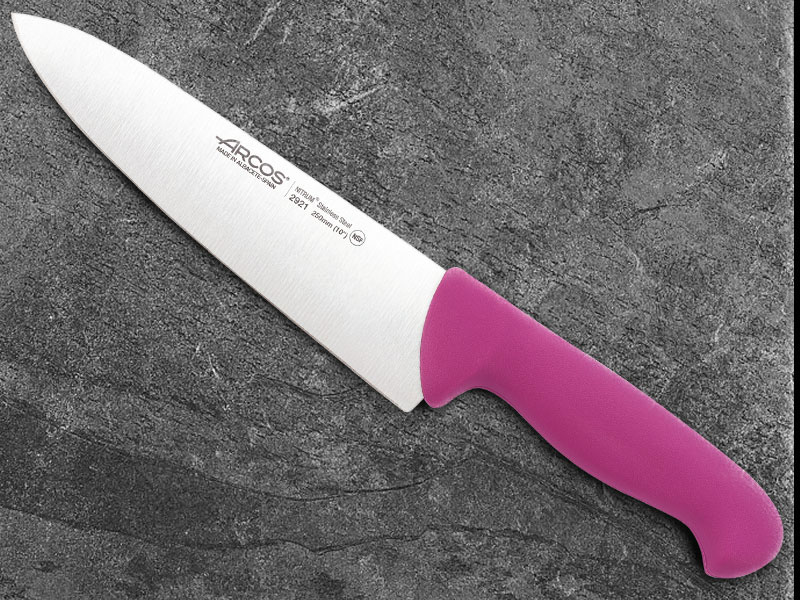El color del mango está pensado para identificar al cuchillo según los alimentos que se cortan Cuenta con certificación sanitaria NSF Internacional (National Sanitary Foundation). El color fucsia es la serie pensada para corte de alimentos sin alérgenos.