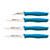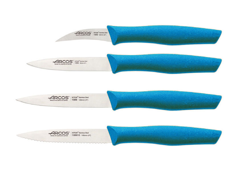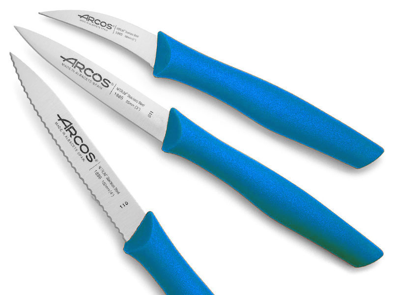 Cuchillos Nova. Color azul. Mondadores especialmente diseñados para pelar todo tipo de frutas y tubérculos. Alta resistencia y durabilidad. Su mango de polipropileno, más ergonómico y moderno, aporta distinción y ligereza. Hoja de acero inoxidable NITRUM. Su hoja estrecha y delgada permite realizar cortes precisos y proporciona una mejor experiencia en la cocina. Además, resiste altas temperaturas y pequeños golpes.