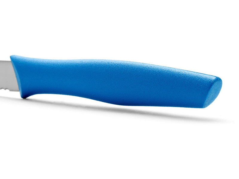 Mango plástico y hoja de acero inoxidable. Disponible en tamaños de 21,5 y 24 cm.