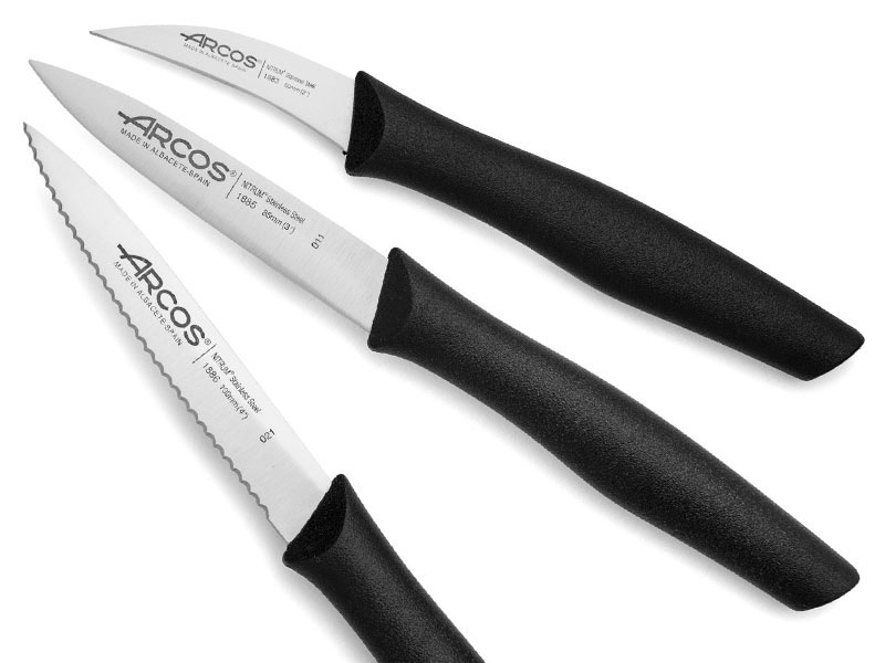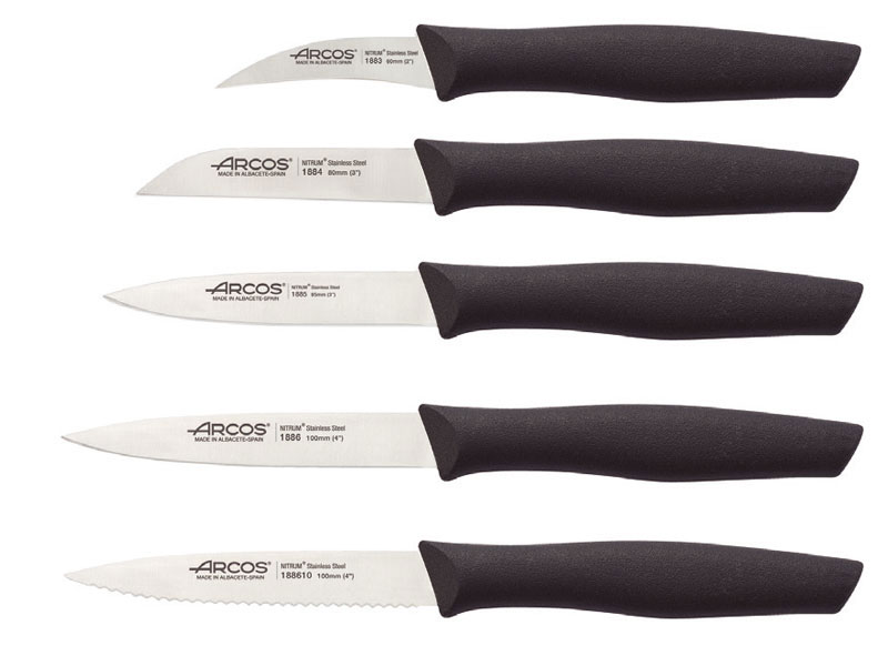 Cuchillos mondadores especialmente diseñados para pelar todo tipo de frutas y tubérculos. Hojas: Acero inoxidable Nitrum®. Mangos: Polipropileno (PP).