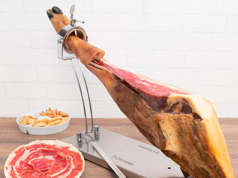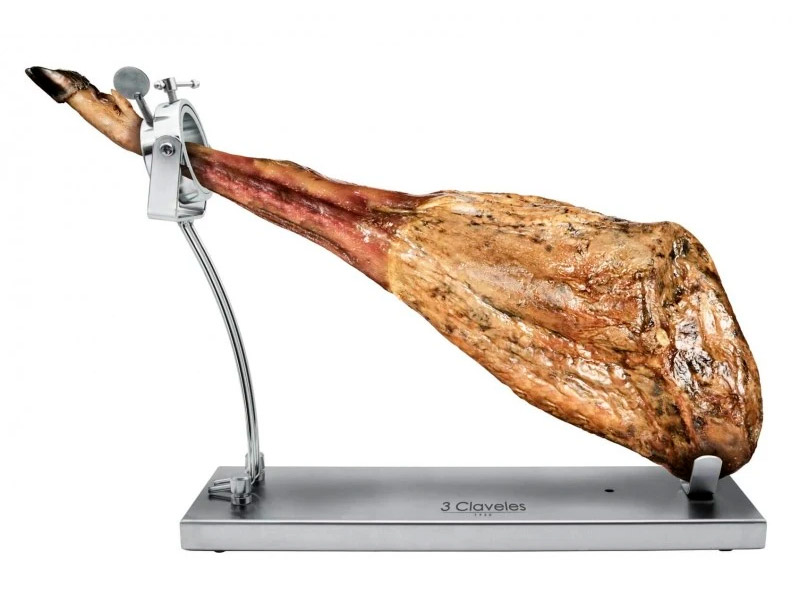Soporte jamonero plegable Pro con sistema giratorio para acceder fácilmente a todas las partes de la pieza.