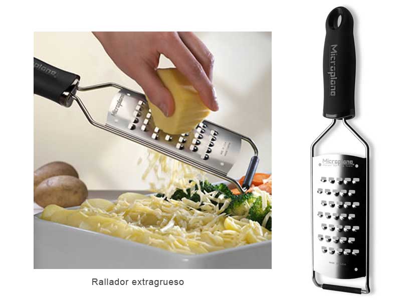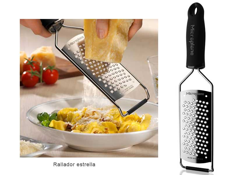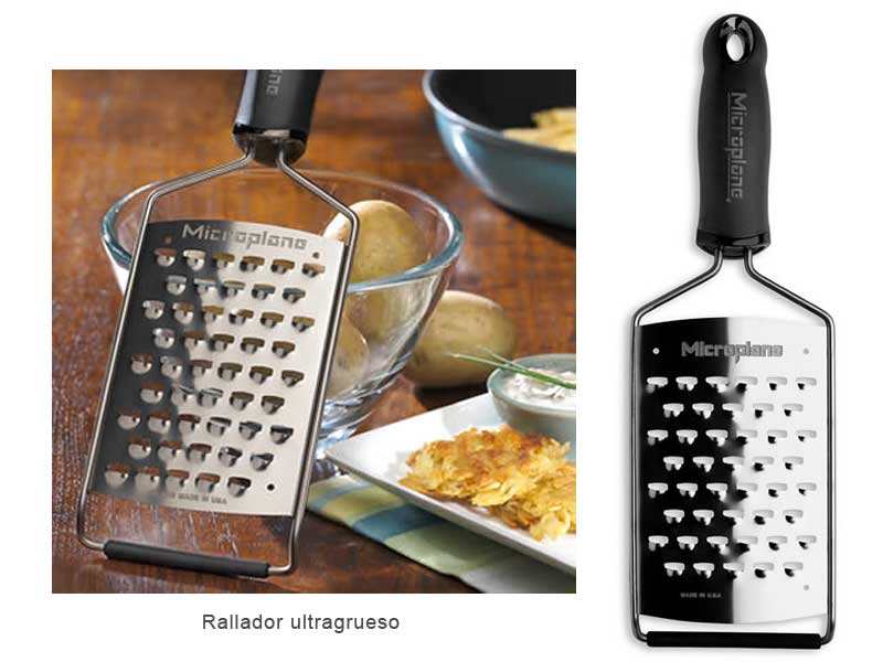 Ralladura de cítricos, chiles, canela, coco, jengibre, ajo, cebolla y quesos duros. Asa cómoda y ergonómica suave al tacto con lazo para colgar opcional.