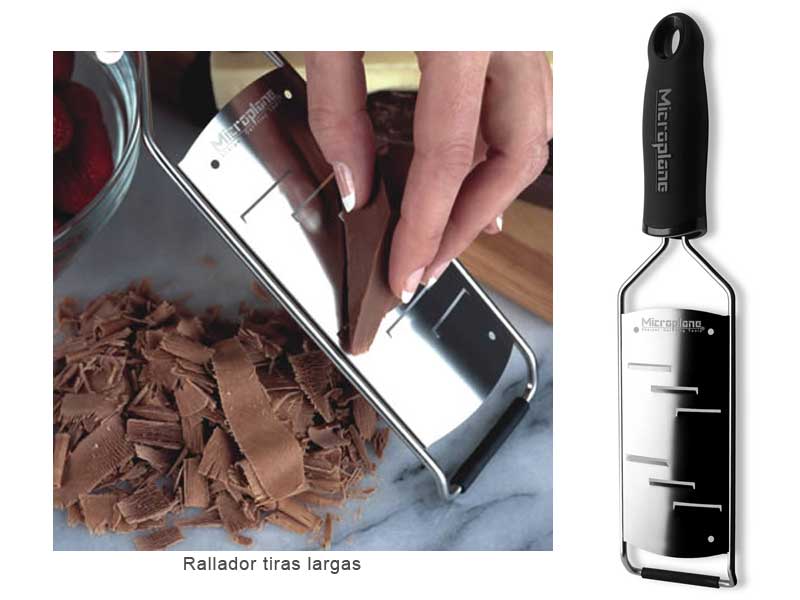 Rallador tiras largas gourmet. Recetas que merecen una presentación impactante. Queso, ajo, chocolate, trufas, verduras, jengibre.