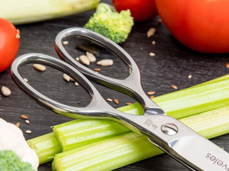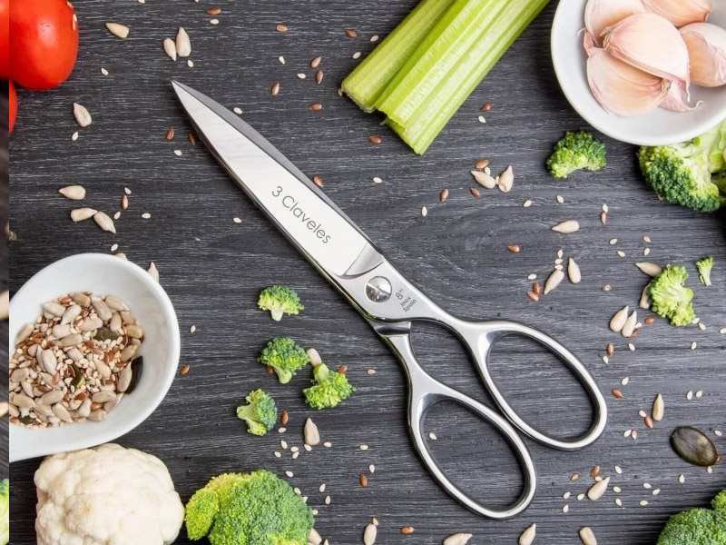 Tijera de cocina Gastro fabricada en acero inoxidable forjado en caliente, lo que garantiza máxima resistencia y durabilidad. Su nuevo diseño con dedales ergonómicos ofrece un agarre cómodo y seguro, incluso con las manos húmedas, ideal para un uso prolongado.