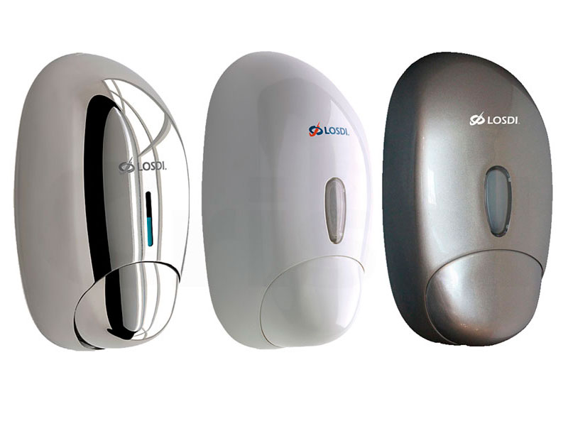 1 L. 12,6 x h25 cm. Dosificadores para jabón liquido o gel hidroalcohólico. Ergonómicos. Cerradura y llave de plástico. Válvula antigoteo. Modelos en acero inoxidable 304 o ABS blanco.
