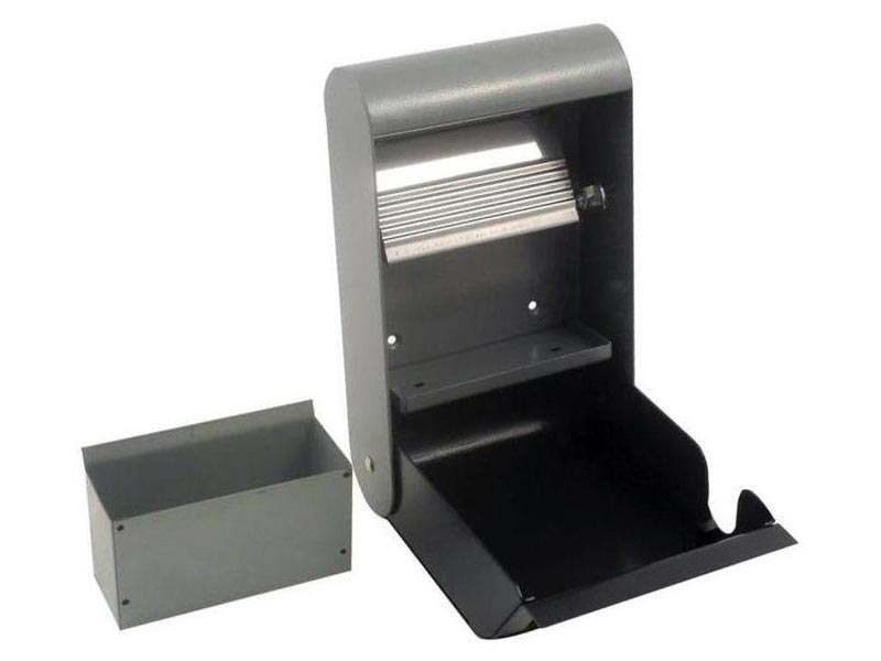 Epoxi color gris. Cuerpo de acero galvanizado en pintura electroestática, placa para colillas de acero inoxidable de alta resistencia. Tratamiento de protección U.V. Modelo mural con sistema de cierre con llave y un kit de montaje a la pared incluido.