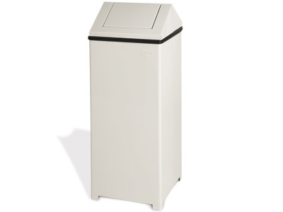 Papelera rectangular tapa basculante. Cabezal basculante. Fabricada electrocincada de 0,8mm de espesor. Capacidad de 40 litros.