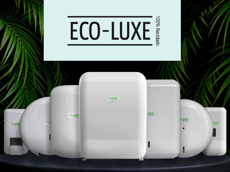 Dispensador de papel toalla Eco-Luxe. Plástico 100% reciclado. Combina superficies lisas con zonas onduladas.