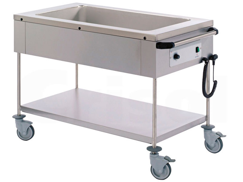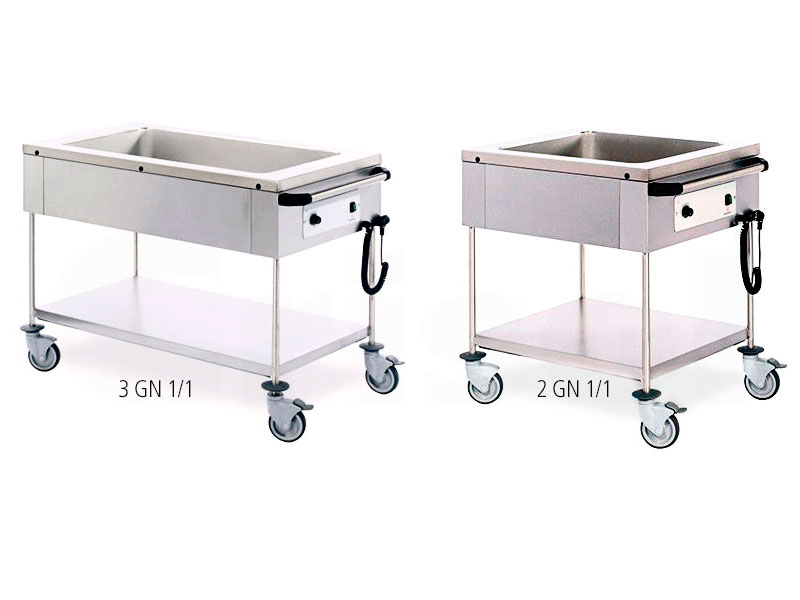 Gama completa de baños maría móviles fabricados en acero inoxidable. Higiénicos y seguros. Altura 90 cm. Ruedas Ø125mm, dos con freno.