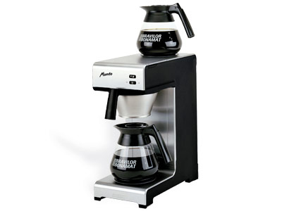 Cafetera eléctrica con 2 jarras. Con filtro. El filtrado permite apreciar los sabores y aromas delicados. Capacidad de 1,8 litros.