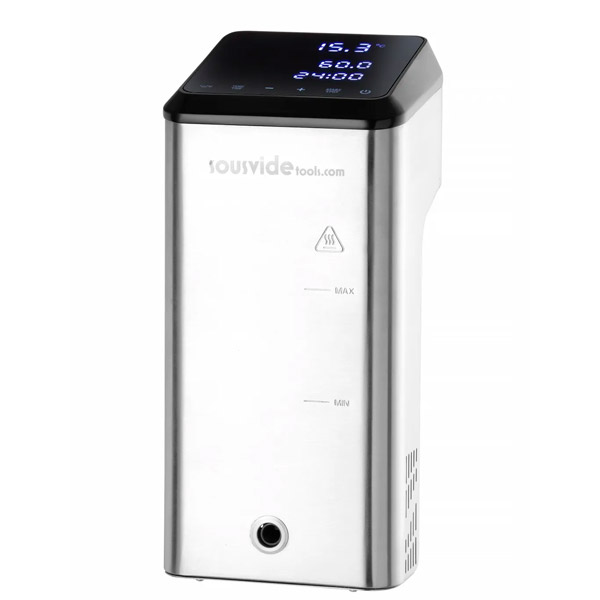 El circulador térmico sous vide iVide (222997) es un dispositivo de alta precisión, ideal para cocciones al vacío, con un control de temperatura entre 5°C y 99°C, y precisión de 0,07°C. Diseñado para adaptarse a recipientes cilíndricos o rectangulares, tiene un rendimiento óptimo para volúmenes de hasta 80 litros. Su pantalla táctil de 10 cm facilita el manejo, y la app asociada permite controlar múltiples dispositivos, acceder a más de 600 recetas y almacenar tiempos y temperaturas.
