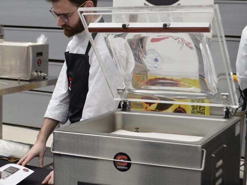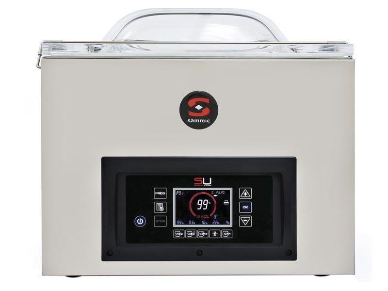 Panel de mandos digital. Vacío es controlado por un sensor o microprocesador de gran precisión. Permiten prolongar el tiempo de conservación de los alimentos crudos o cocinados, sin pérdida del peso, sin que se resequen ni mezclen sabores y olores. Carrocería y cuba en acero inoxidable. Limpieza de la cuba fácil y cómoda. Doble soldadura o doble cordón de sellado para garantizar la durabilidad del envasado. Series de modelos agrupados en gamas.