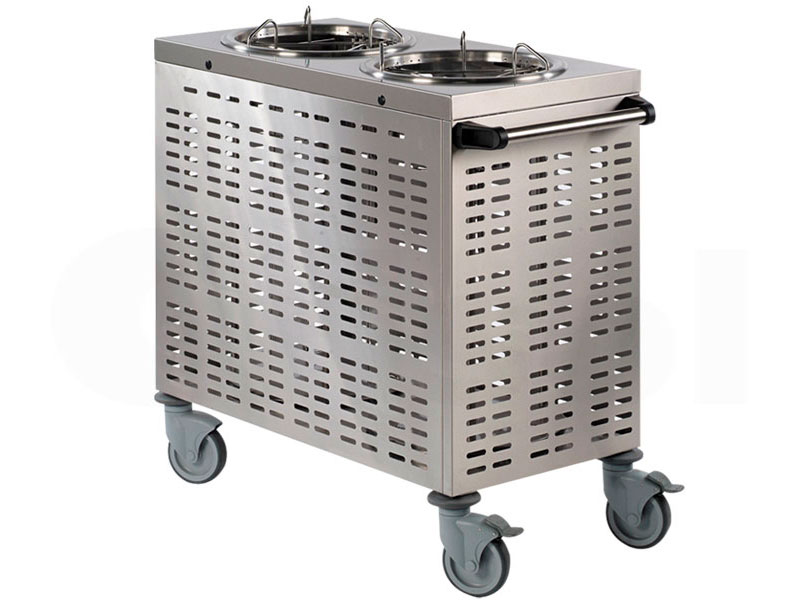 2 Silos. Para platos calientes redondos Ø20-Ø31 cm. 1.400W. Termógenos estáticos con y sin ventilación. Suministrados con tapas-campanas Inox. Carga máxima 160 kg.
