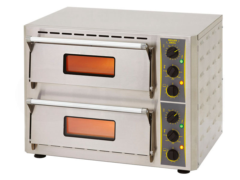 Con tubos de cuarzo infrarrojos (1050ºC) y piedra refractaria. Para cualquier tipo de pizza. Regulador para la piedra refractaria y regulador con termostato para los tubos infrarrojos superiores.Permite cocinar otros productos como pancakes, chapatas, tartas o patatas bravas. Una pizza fresca o congelada de Ø 41 cm a 350ºC se cocina en solo 3 minutos.