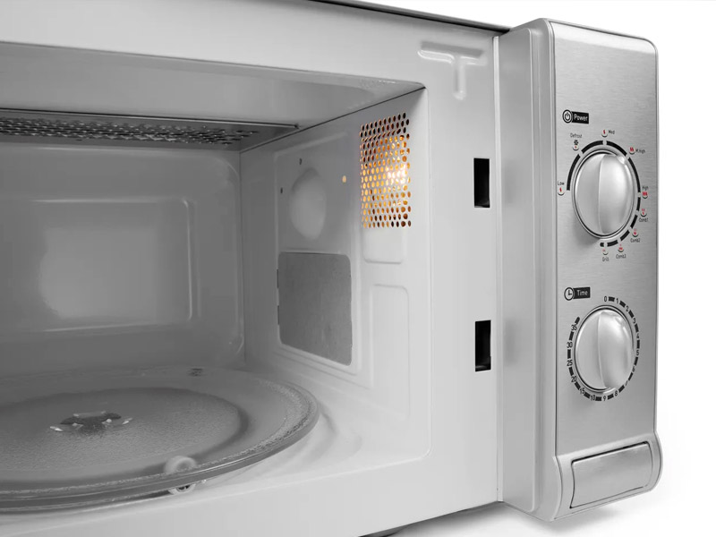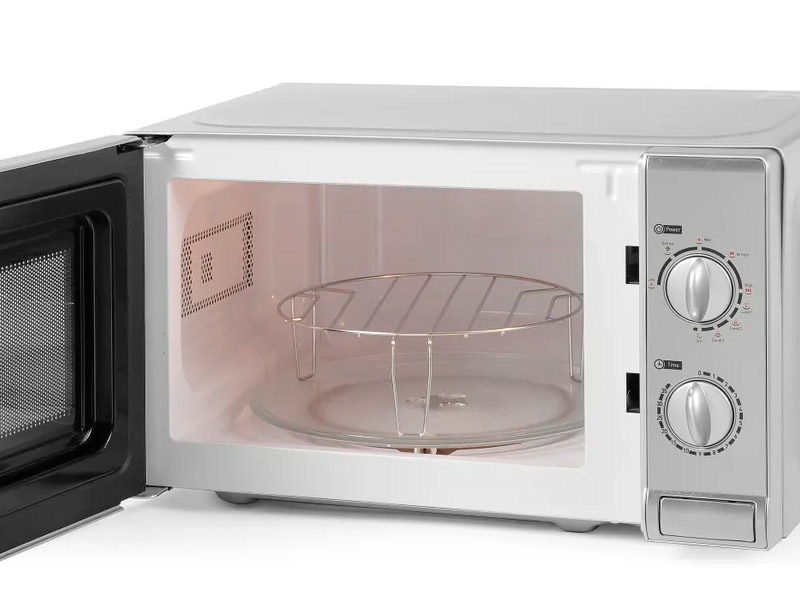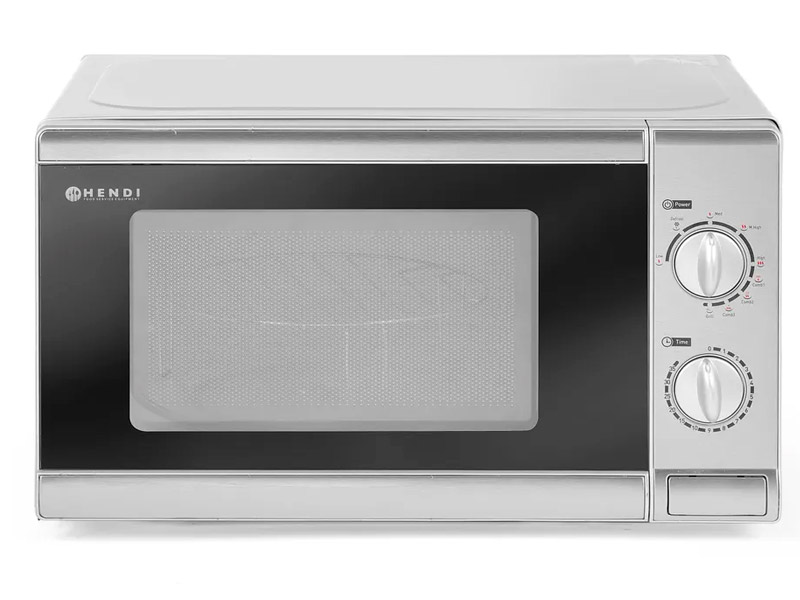 Horno microondas con función de asado (potencia 1000 W). Un equipo multifuncional diseñado para calentar, descongelar y asar platos, ideal para pequeños negocios de comida rápida, cafeterías y oficinas. Con una potencia de 700W y una capacidad de 20 litros, ofrece un rendimiento eficiente.