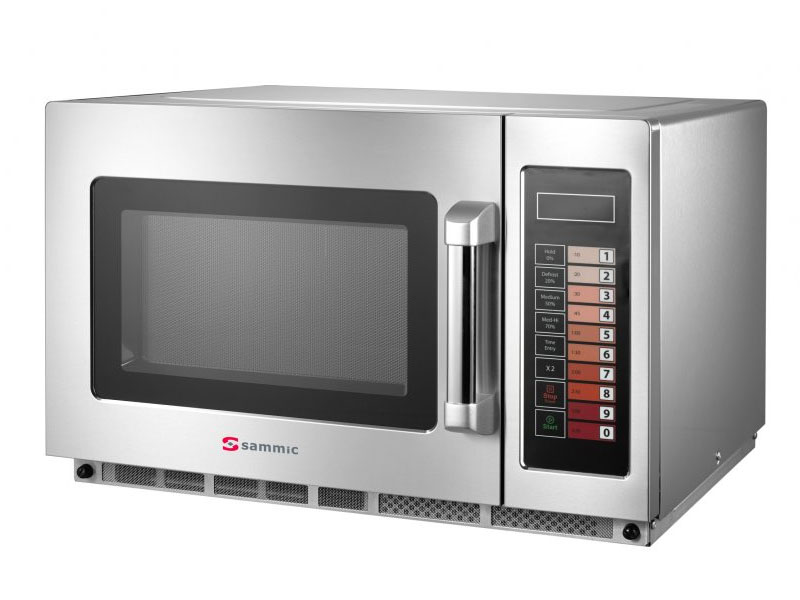 1800 W. Base cerámica fija. 34 litros. Microondas programable de uso intensivo equipado con dos magnetrones. Interior y exterior en acero inoxidable. Base cerámica fija que confiere mayor capacidad al horno. Programación y manejo muy fácil. Posibilidad de dos niveles. Medidas 57 x 53 x h37 cm