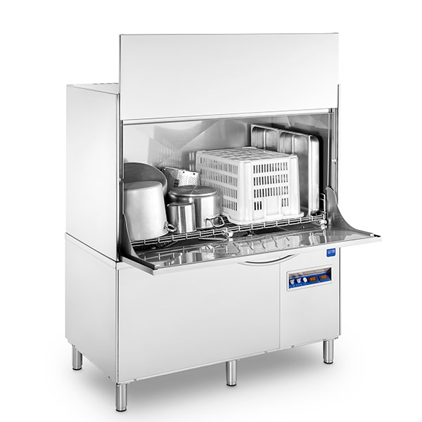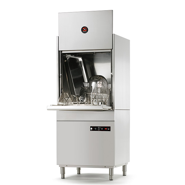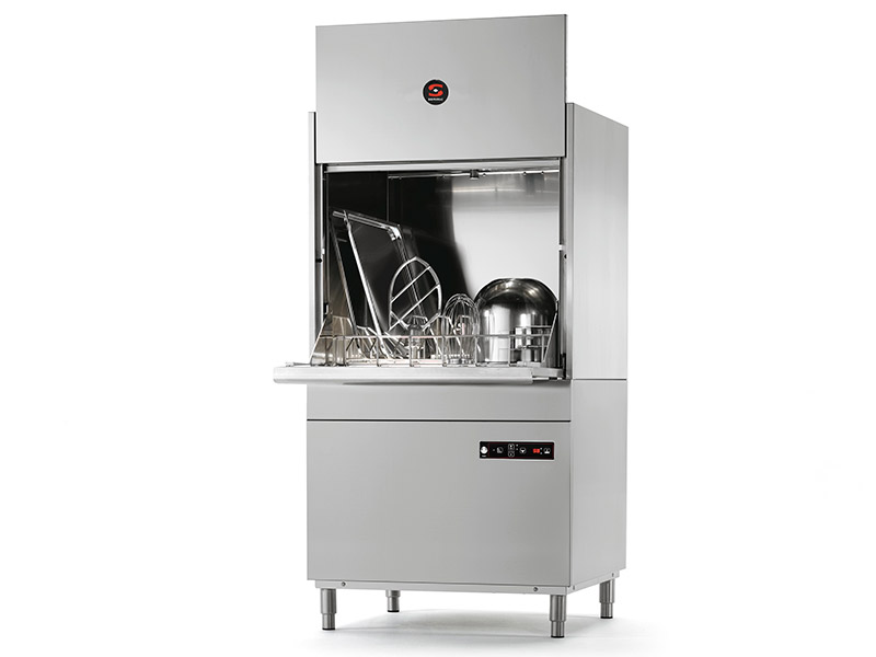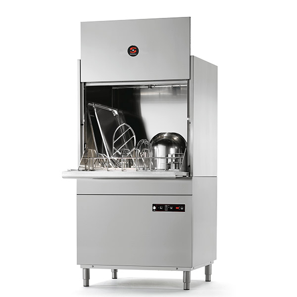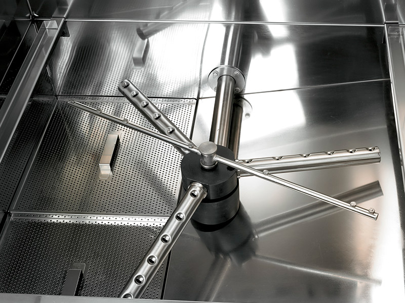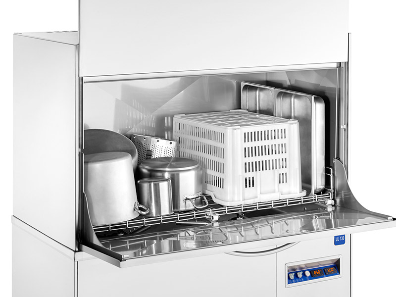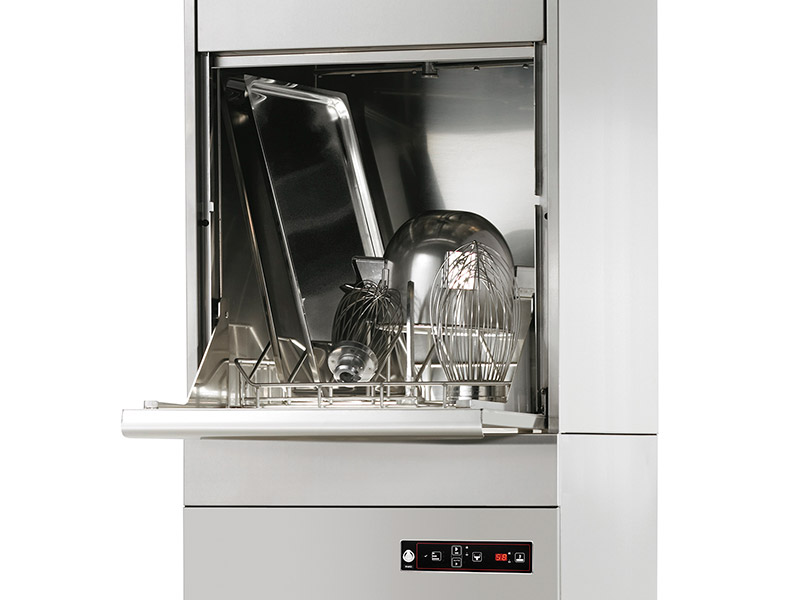 Los acabados redondeados en el interior previenen la acumulación de suciedad, mientras que los difusores de lavado y aclarado, embutidos en tubo de acero inoxidable, se pueden desmontar rápidamente para una limpieza fácil. Un panel de mandos electrónico con LED o visor indica claramente las temperaturas de lavado y aclarado.