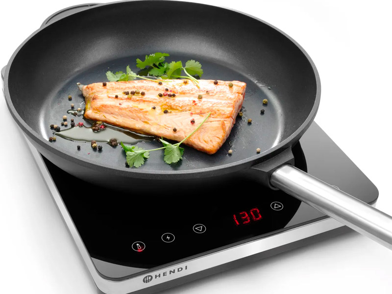 Planchas de inducción Kitchen Line, doble y un fuego, con vidrio cerámico, ajuste en varios pasos, protección sobrecalentamiento y soporte hasta 15-30 kg.