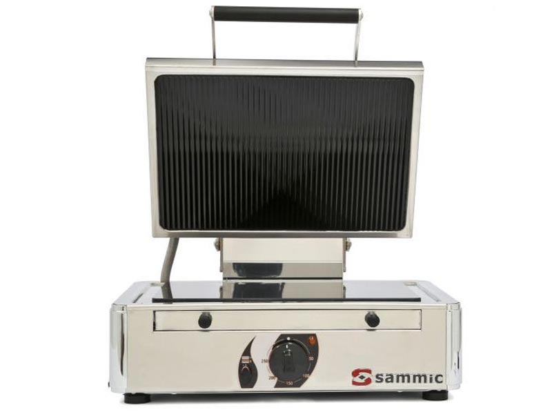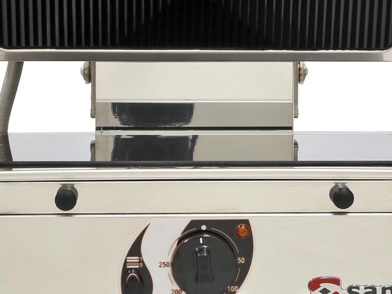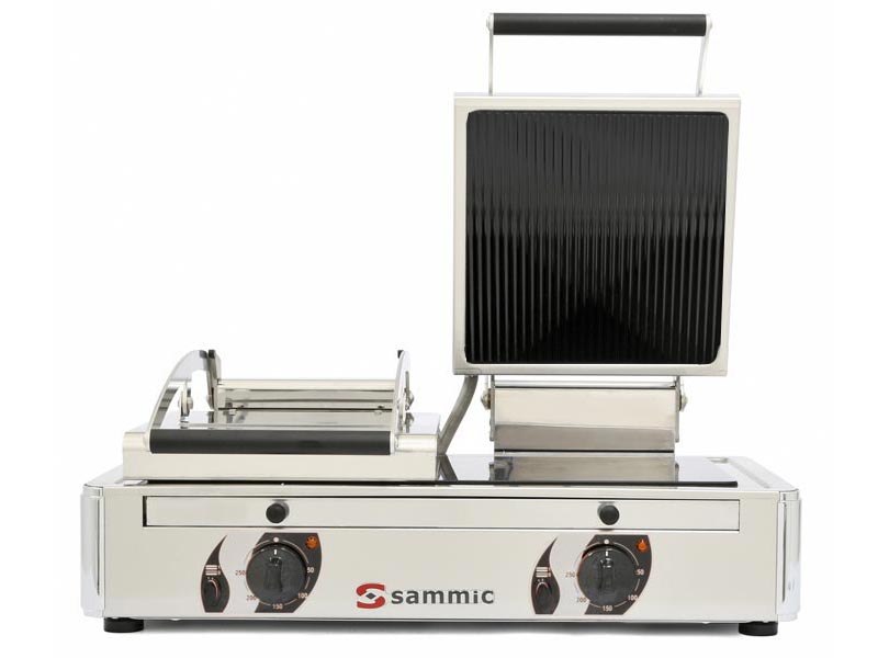 Placas superior e inferior lisas. Cajón recoge-grasas frontal extraíble. Todas las planchas están equipadas con termostato regulable hasta 300ºC.