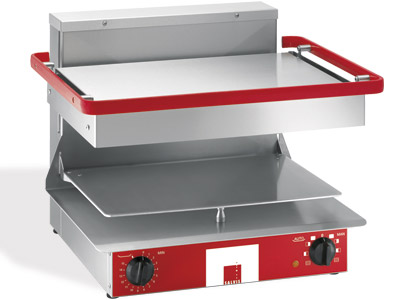 Construida en acero inoxidable AISI 304 Cabezal basculante. Fácil accesibilidad por los tres lados y consiguiente fácil limpieza. Temperatura para gratinar muy rápidamente. Potencia 4.000 W.