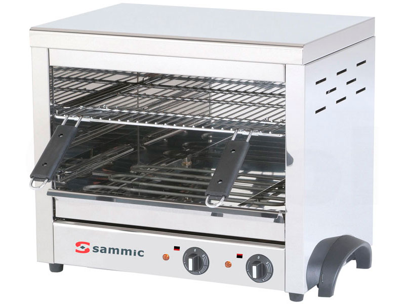 Salamandra gratinadora fija con estantes regulables. Para asar directamente o gratinar toda clase de alimentos antes de servir.