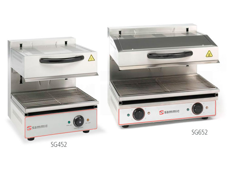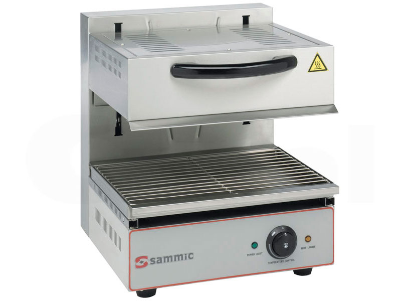 Salamandra gratinadora con techo móvil. Ideal para asar directamente o gratinar toda clase de alimentos antes de servir. Fabricado en acero inoxidable.