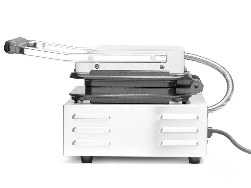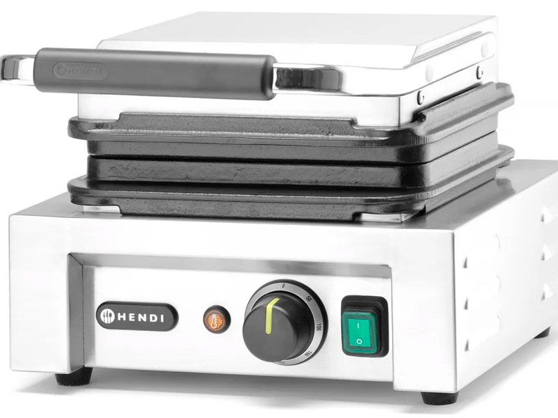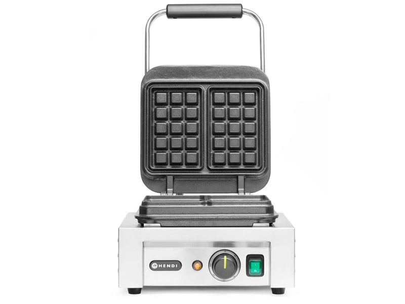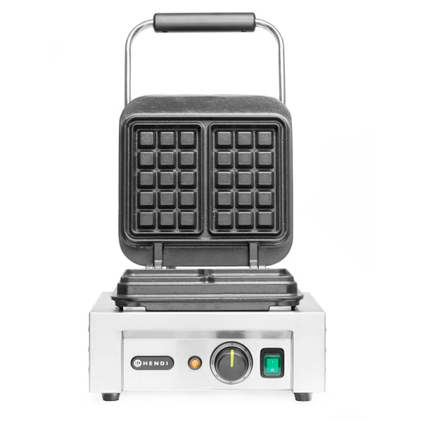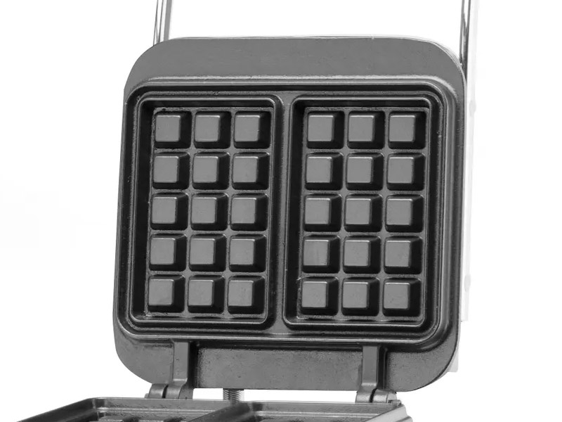 Gofrera Brussels para hacer gofres tipo Bruselas, con 2 plantillas rectangulares de 15 agujeros. Fabricada en hierro fundido esmaltado, se limpia fácilmente con un cepillo. Cuenta con un termostato para controlar la temperatura, mango aislado para mayor seguridad e incluye un tenedor para extraer los gofres.