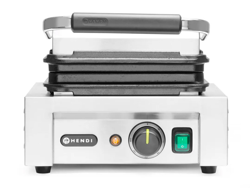 Placas superior acanalada e inferior lisa. Cajón recoge-grasas frontal extraíble. Todas las planchas están equipadas con termostato regulable hasta 300ºC.