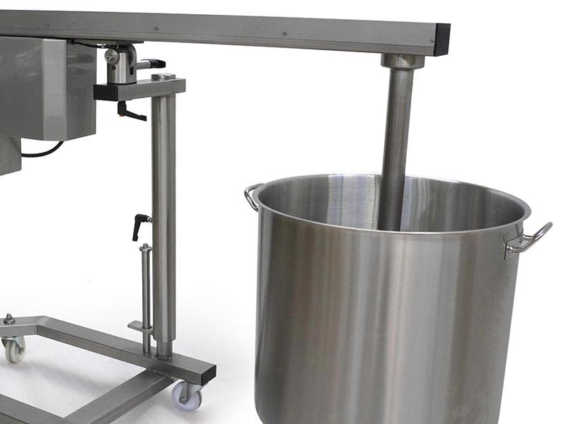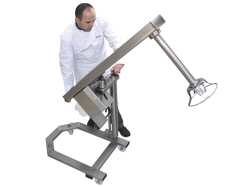 Jirafa GIGAMIX. Fácil de desplazar sobre ruedas. Plegable. Las versiones con variador de velocidad permiten una gran variedad de recetas así como el trabajo con cantidades reducidas sin salpicar (velocidad de 2.500 a 4.000rpm).