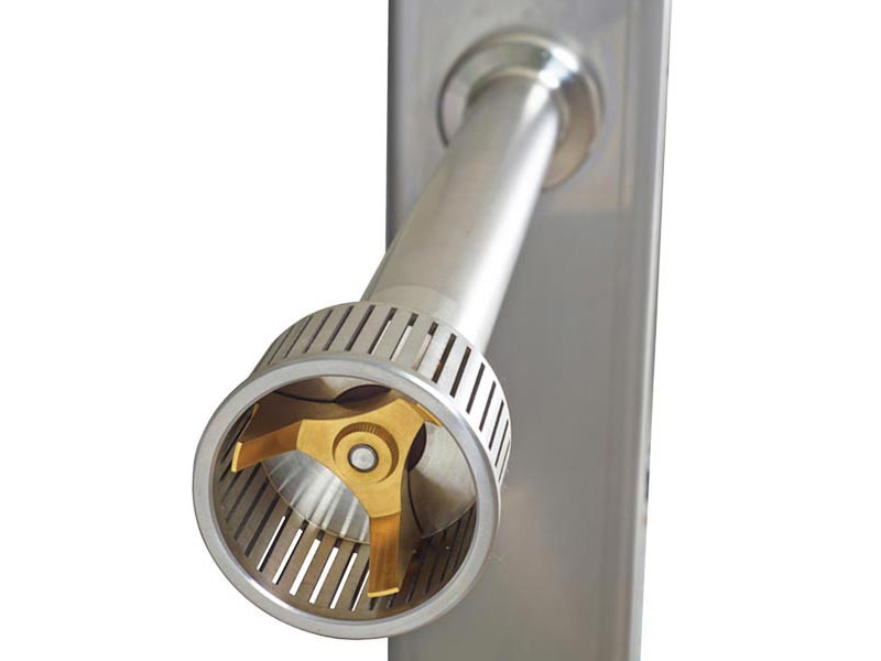 Para grandes colectividades y hospitales. Todo inox. Tubo de inmersión de 57cm. Diámetro de campana de 27cm. La distancia de la campana al suelo es regulable en altura.