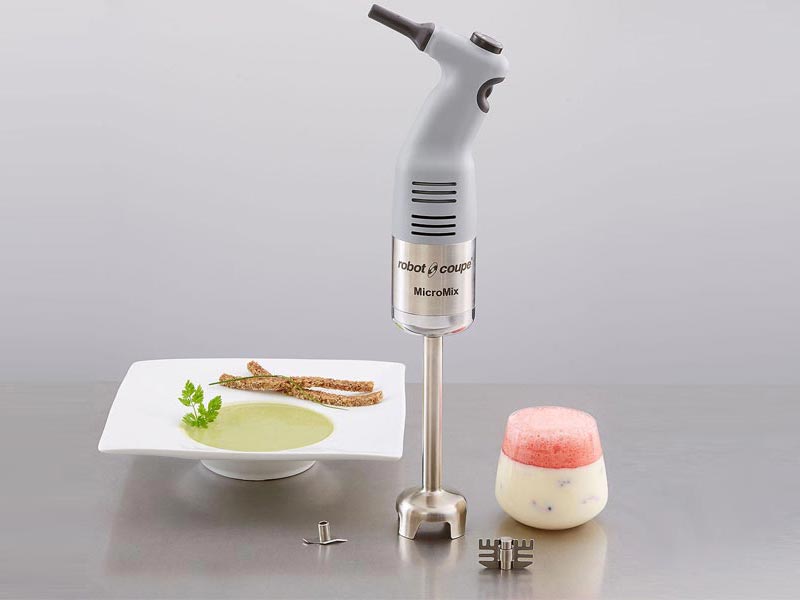 Completa gama de 18 modelos. Cuchillas y campanas desmontables para una higiene perfecta. Todos los modelos incluyen soporte mural inoxidable. Mangos ergonómicos. Las referencias ?Combi? incluyen batidor de acero inoxidable.
