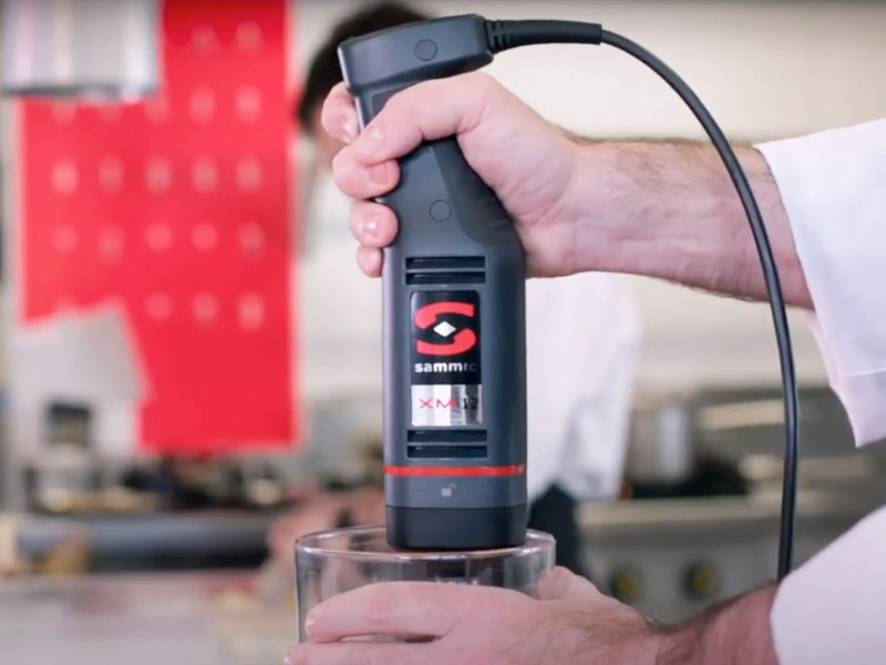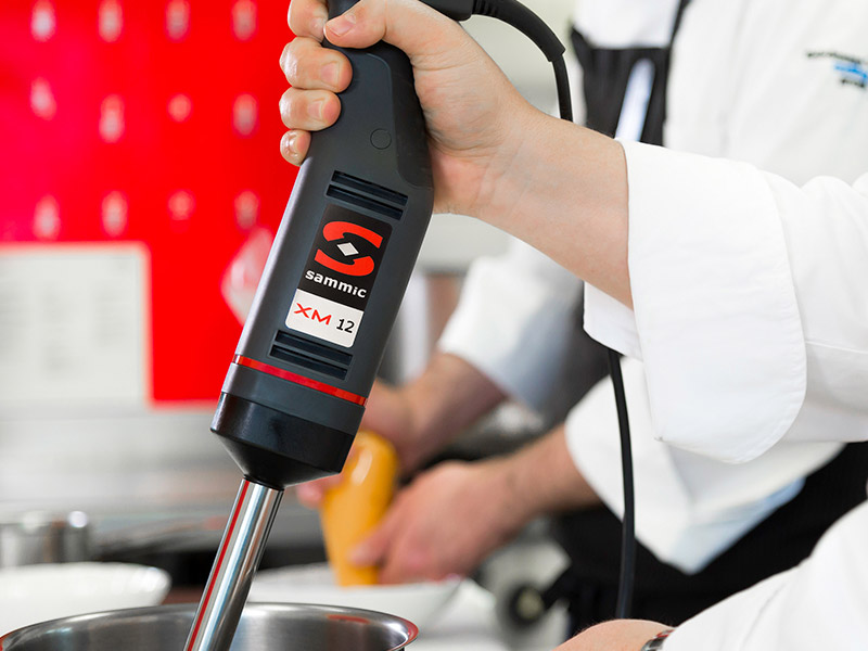 Trituradores y batidora profesionales gama M. Diseñados para un uno continuo en recipientes de hasta 60 litros. Batidora de varillas para batir hasta 50 claras de huevo.