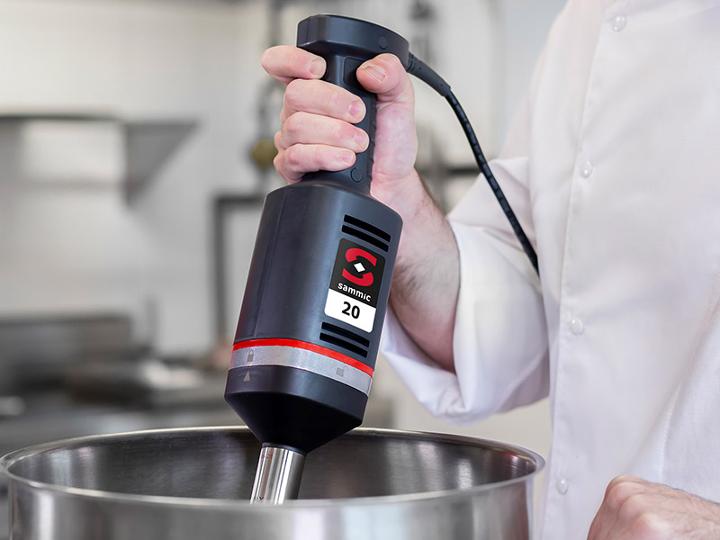 Trituradores y batidora profesionales gama M. Diseñados para un uno continuo en recipientes de hasta 60 litros. Batidora de varillas para batir hasta 50 claras de huevo.
