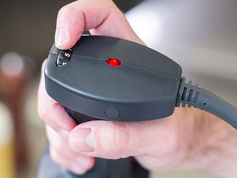 Cuchillo eléctrico. Con un seguro sistema de grosor del corte. Diámetro cuchilla 8 cm.