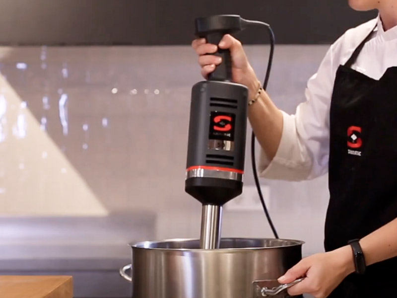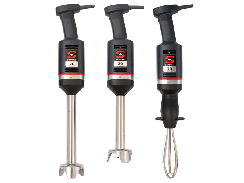 Trituradores y batidora profesionales gama S. Diseñados para un uno continuo en recipientes de hasta 15 litros. Batidora de varillas para batir hasta 30 claras de huevo.
