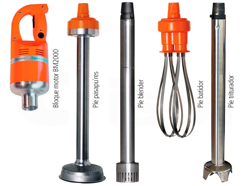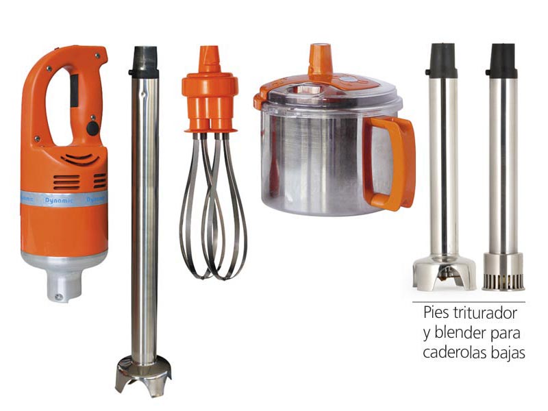 Pie fijo. Triturador 9.500 rpm. DSC: Limita la velocidad con el brazo en el aire. Indicados para preparaciones grandes y muy grandes. 500W.