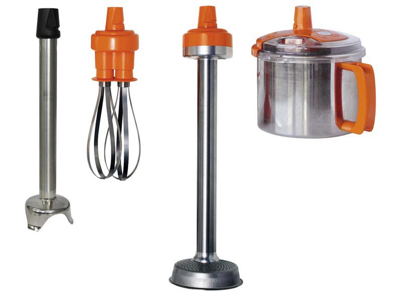 Trituradores y batidora profesionales gama L. Diseñados para un uno continuo en recipientes de hasta 120 litros. Batidora de varillas para batir hasta 80 claras de huevo.
