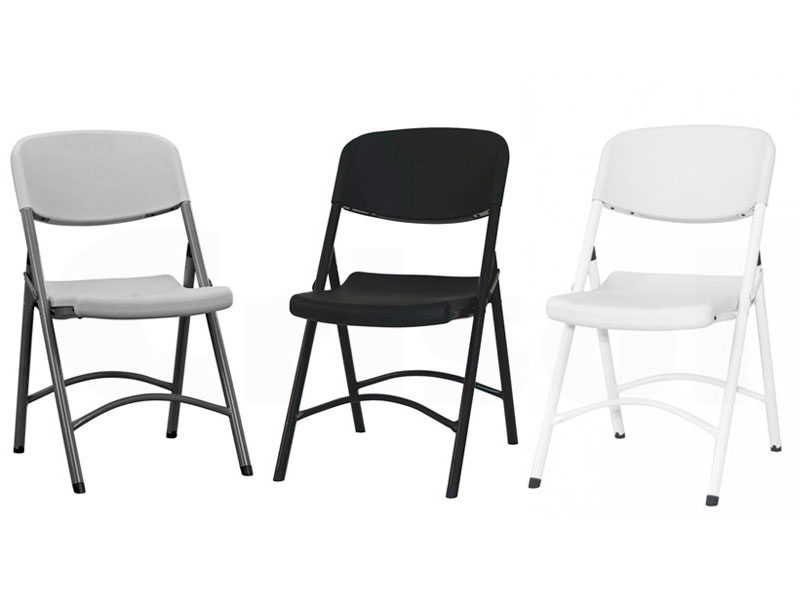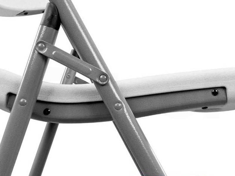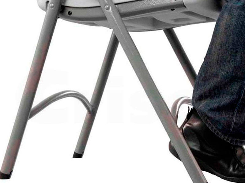 Silla plegable de polietileno de alta densidad y acero pintado por pulverización. Indicada para uso público severo. Hidrófuga. Ideal para uso en el exterior. Travesaño, asiento, respaldo y asa ergonómicos.